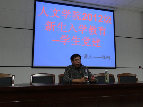 在讲座上,陈柯老师首先向同学们简单介绍了当代大学生入党的基本情况和入党的相关程序。他坚持尊重历史的原则,向大家讲述了中国共产党的发展历史,深入浅出的解释了当代大学生入党的意义,希望2012级新生们能够积极加入中国共产党,追求精神的充实和进步。陈柯老师表示:人需要融入社会才能体现出其生命价值,而中国共产党就是当代大学生能发挥个人最大作用的组织.他引用前任北大校长的话:“心中有爱,脑中有思,肩上有责”,鼓励同学们怀揣梦想,脚踏实地,做一个立足高远,思想自由,独立自主,有明确社会责任感的合格大学生。